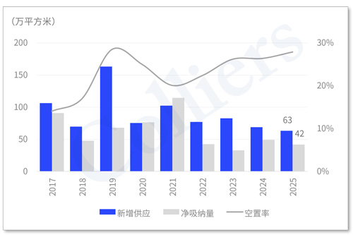 另一方面,供應層面挑戰(zhàn)不容忽視。未來三年,預計深圳市場化租賃的甲級寫字樓供應量或超300萬平方米,研發(fā)辦公約160萬平方米。這將使空置率持續(xù)高位運行,租金預計在L形底部徘徊。市場去化進程則取決于各區(qū)域與新興產業(yè)的鏈接強度,產業(yè)集聚度高、產業(yè)生態(tài)完善、配套成熟的子市場將率先企穩(wěn),形成獨立于整體下行的韌性行情。