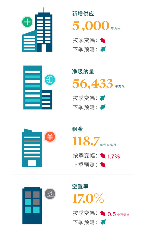 第四季度,廣州市甲級(jí)寫字樓市場(chǎng)僅錄得1 宗新增供應(yīng),為丸美集團(tuán)總部大樓。由于項(xiàng)目以自用為主,對(duì)外出租僅為零星面積,實(shí)際入市體量約5,000平方米,對(duì)市場(chǎng)新增壓力有限。受年末被壓抑需求集中釋放帶動(dòng),凈吸納量回升至56,433平方米,為全年單季最高;在去化改善的支撐下,全市空置率環(huán)比收窄0.5個(gè)百分點(diǎn)至17.0%;乜慈辏M管需求側(cè)同比增至121,461平方米,但仍明顯弱于供給側(cè)新增的482,076平方米,使全年凈吸納量?jī)H處于近五年中位水平;供給集中入市仍是推升空置率同比上行的主因。