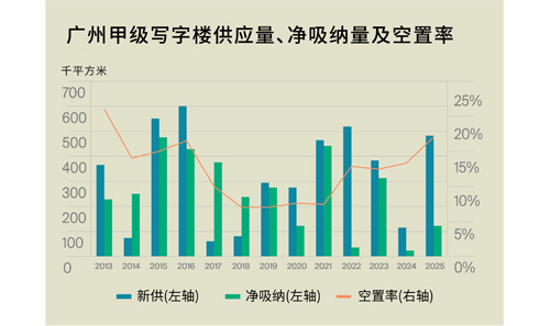 “展望2026年,廣州甲級(jí)寫字樓仍將面臨超過(guò)140萬(wàn)平方米的新增供給壓力。雖然2025年需求有所修復(fù),但供需缺口尚未出現(xiàn)實(shí)質(zhì)性收斂,預(yù)計(jì)全年空置率仍處上行通道。進(jìn)入2026年一季度,部分延期項(xiàng)目有望集中交付;這類項(xiàng)目普遍” 經(jīng)歷了半年至一年的預(yù)招商,入市初期或能帶來(lái)一定的凈吸納增量,但在供給體量仍顯著偏大的背景下,空置率大概率繼續(xù)抬升,市場(chǎng)競(jìng)爭(zhēng)將更依賴“定向讓利+條款組合”來(lái)實(shí)現(xiàn)去化!