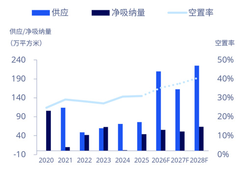 供應(yīng)、凈吸納量及空置率,2020-2028F