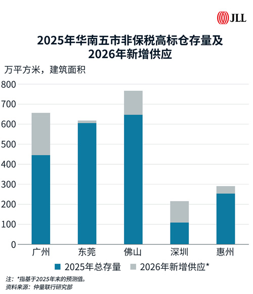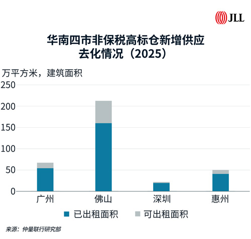 國(guó)內(nèi)電商與第三方物流企業(yè)逐步成為主力租戶,跨境電商擴(kuò)張節(jié)奏放緩,華南五市全年凈吸納量約268萬(wàn)平方米,居全國(guó)前列。