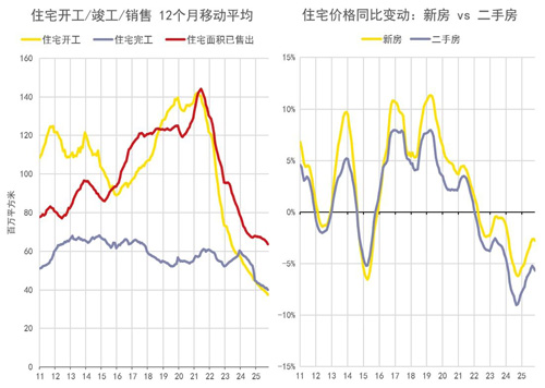 政策支持在邊際上起到作用——降息、放松措施,以及新開工持續(xù)下滑,都在放緩未來供給,幫助庫存去化。年末關(guān)于加大力度處置滯銷存量的信號(hào)方向上偏積極,但購房情緒并不一致,僅有少數(shù)區(qū)域與項(xiàng)目去化良好。