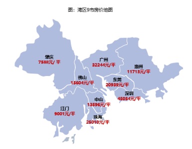 如果從樓市表現(xiàn)上看,9市的房價(jià)價(jià)差就更大了。灣區(qū)9市中,肇慶和江門是唯二房價(jià)沒有過萬的城市。同時(shí)肇慶也是灣區(qū)城市中唯一沒有限購限售政策的城市。