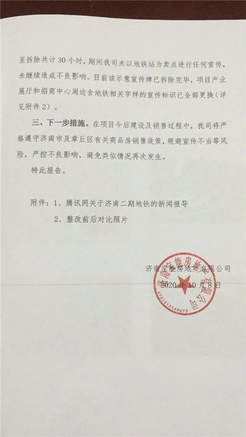 10月8日上午,該項目制定拆除方案,并立即開始施工拆除,同時,該項目售樓處關于“地鐵”的所有宣傳資料也一并“下架”整改;
