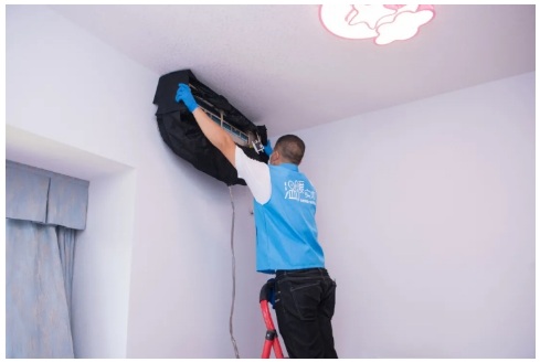 實地物業(yè)人員上門為業(yè)主清洗空調(diào)