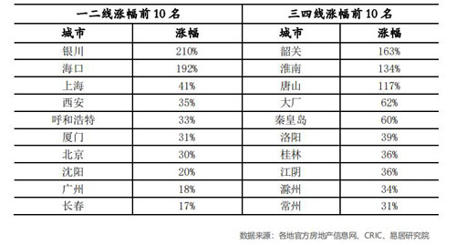 據(jù)悉,銀川在十一假期前已經(jīng)出臺了房地產(chǎn)新政,即“銀八條”,預(yù)計(jì)后續(xù)地價(jià)將進(jìn)一步趨穩(wěn)。而在全國 64 個(gè)三四線城市中,韶關(guān)、淮南和唐山的地價(jià)上漲幅度較大。除此之外,包括大廠、秦皇島、洛陽、桂林、江陰、滁州和常州的地價(jià)漲幅較大,均超過了 30%的水平。
