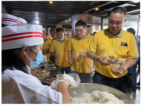 司機(jī)們按照秩序排隊(duì)用餐