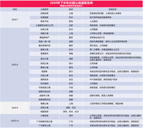2020年長(zhǎng)租公寓似乎格外艱難,負(fù)面消息接二連三。根據(jù)《財(cái)報(bào)》公開(kāi)資料統(tǒng)計(jì),下半年暴雷企業(yè)多達(dá)30家,受害的房東及租客高達(dá)幾百萬(wàn)。