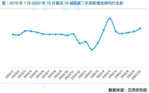 貝殼研究院數(shù)據(jù)顯示,2020年10月,重點(diǎn)18城鏈家二手房新增掛牌房源量比上月環(huán)比下降5.6%,連續(xù)第3個月環(huán)比下降。與去年同期相比,今年10月二手房掛牌量明顯增多,鏈家18城10月新增掛牌房源量同比增長10.8%,為自今年4月以后連續(xù)第7個月單月同比增長。