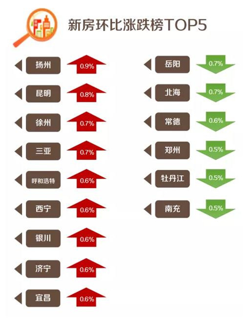 值得一提的是,70個(gè)大中城市的新房單月房價(jià)環(huán)比上漲幅度都已經(jīng)在1%以下,最高漲幅揚(yáng)州也不過是0.9%。