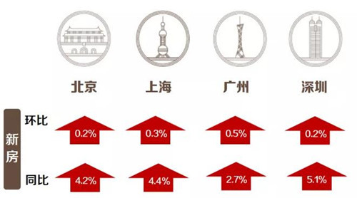 在4個(gè)一線城市中,北京、上海、廣州和深圳分別上漲0.4%、0.5%、0.6%和0.9%。