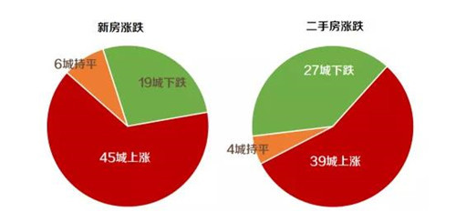 從房價(jià)上漲和下跌的城市數(shù)量來看,發(fā)現(xiàn)已有近半數(shù)城市房價(jià)漲不動(dòng)了。