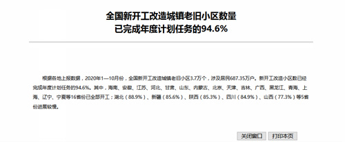 11月18日,從住建部網(wǎng)站獲悉,根據(jù)各地上報數(shù)據(jù),2020年1-10月份,全國新開工改造城鎮(zhèn)老舊小區(qū)3.7萬個,涉及居民687.35萬戶。新開工改造小區(qū)數(shù)已經(jīng)完成年度計劃任務(wù)的94.6%。