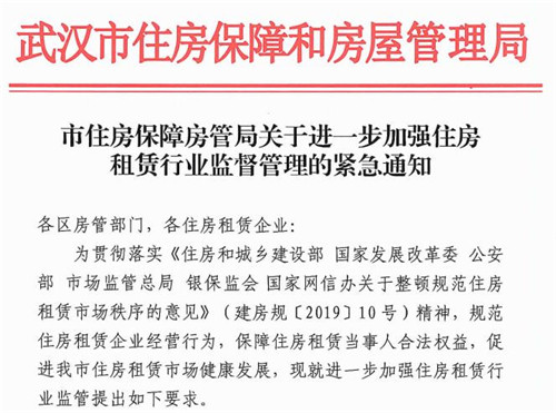 房訊網(wǎng)訊 近日,武漢市住房保障房管局發(fā)布《關(guān)于進一步加強住房租賃行業(yè)監(jiān)督管理的緊急通知》,要求進一步加強住房竹林行業(yè)監(jiān)督管理。