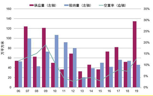 海量供應(yīng)入市加之需求下降,兩者拉動(dòng)北京全市寫字樓空置率上升至12.7%,這項(xiàng)指標(biāo)也是自2009年以來(lái)的最高值。