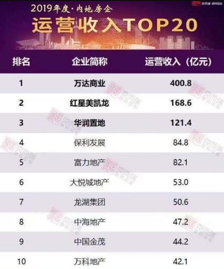 除了地產(chǎn)開發(fā),在商業(yè)運(yùn)營方面,根據(jù)克而瑞發(fā)布的2019年度內(nèi)地房企運(yùn)營收入TOP20榜單,紅星地產(chǎn)母公司紅星美凱龍控股集團(tuán)以168.6億元的好成績位列榜單第二。