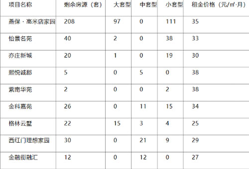 根據(jù)公告,這9個公租房項(xiàng)目分別是:燕保?高米店家園、怡景名苑、亦莊新城、熙悅誠郡、紫南華苑、金科嘉苑、格林云墅、西紅門理想家園、金融街融匯,月租金范圍從25元/平方米到38元/平方米。