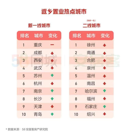隨著區(qū)域協(xié)調(diào)發(fā)展的推進(jìn),在一線城市外,新一線城市和二線城市的吸引力進(jìn)一步增強(qiáng),成為了返鄉(xiāng)置業(yè)人群意向城市的新選擇!秷(bào)告》顯示,全國范圍來看,新一線城市重慶依然是返鄉(xiāng)置業(yè)的熱門城市,成都、西安位列第二、三位。