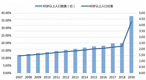 圖:2007-2018年中國60歲以上人口數(shù)量及比重
