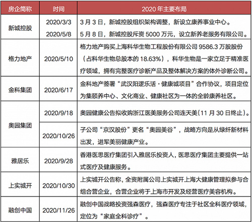 表:2020年房企在大健康賽道的主要新布局