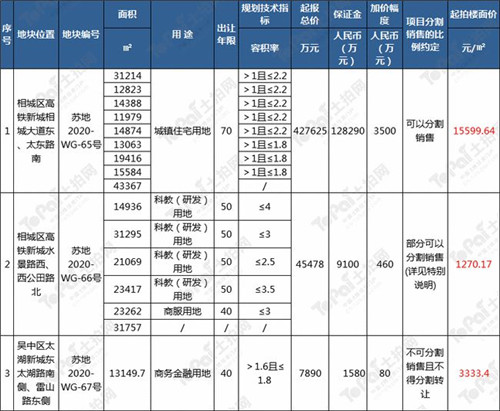 2020年10月,江蘇東茂商業(yè)發(fā)展有限公司(股東為京東、平安不動產(chǎn)及中南)以底價42.76億元的價格獲取了蘇州相城區(qū)蘇地2020-WG-65號地塊,樓面價15600元/平米。該地塊為住宅用地,物業(yè)可分割銷售。