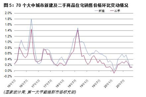 與一手市場相反,二手商品住宅價格在11月略有提速,環(huán)比增速從10月的0.11%增至0.13%。這也是2017年9月以來二手住宅價格環(huán)比增幅的首次反超。在較為成熟的大城市,二手住宅價格表現(xiàn)繼續(xù)優(yōu)于一手市場。11月一線城市二手住宅平均環(huán)比上漲0.55%,高于一手的0.20%。