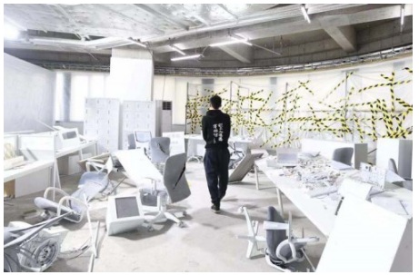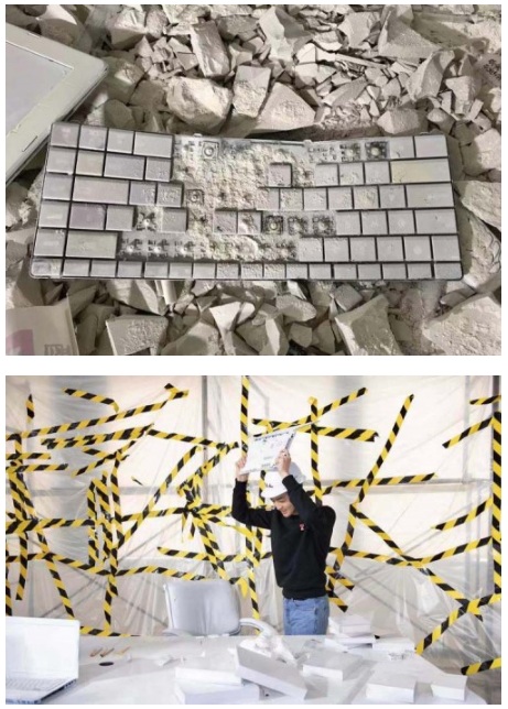 背投電腦屏幕,翻蓋手機(jī)等90年代盛行的電子產(chǎn)品,讓人置身一個(gè)90年代辦公室的考古現(xiàn)場(chǎng),這是由藝術(shù)家朱敬一與朱濱共同打造的互動(dòng)空間“打破傳統(tǒng)”,藝術(shù)家模擬了一個(gè)90年代設(shè)計(jì)建造但在當(dāng)下已經(jīng)破敗不堪的辦公室。