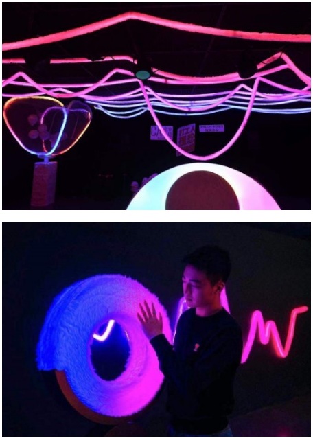 以前的工作空間純粹為了生產(chǎn),《Living Waves》通過(guò)聲音與光影的融合,讓參展者感受光影在身體上的流動(dòng)與穿梭,從環(huán)境中全身心地汲取新靈感,打破思維的圍墻,衍生出無(wú)限的創(chuàng)意與巧思,并轉(zhuǎn)化成自己的創(chuàng)造力和問(wèn)題解決力。