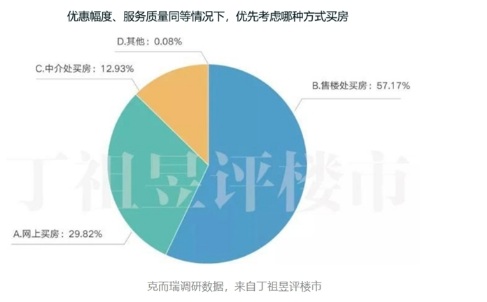 而克而瑞調(diào)研顯示,在優(yōu)惠幅度、服務(wù)質(zhì)量同等情況下,30%的用戶會(huì)優(yōu)先考慮網(wǎng)上購房。