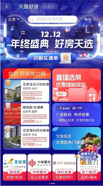 另外不可錯過的,是與天貓好房合作的各大品牌房企們在雙12期間發(fā)起的全天候“品牌日”。每家房企都將獨占一整天的品牌亮相,誠意滿滿地奉上豪禮。