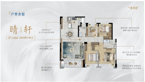 138㎡奢享四房?jī)蓮d,延續(xù)高標(biāo)準(zhǔn)生活尺度