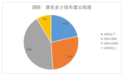問卷調(diào)研中,78.29%的租客認(rèn)為租房不會(huì)影響生活品質(zhì),40%的租客甚至愿意花費(fèi)超過5000元裝飾自己的房屋,裝飾類型包括軟裝改造、生活家電等。據(jù)BOSS直聘數(shù)據(jù)顯示,2019年北京白領(lǐng)平均月薪為12312元,薪資水平為全國最高。愿為租房花費(fèi)超過5000元的租客至少得花費(fèi)半月工資來布置房屋。