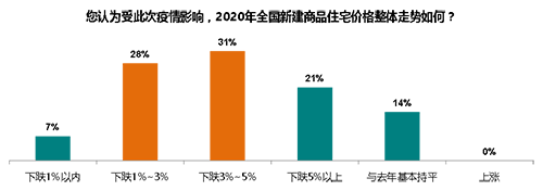 調(diào)查結(jié)果顯示,有86%的專家認為受此次疫情影響,2020年全國新建商品住宅價格整體走勢整體將是下跌的,只有14%的專家認為與去年基本持平,0%的專家認為房價會較去年上漲。因此,雖然房地產(chǎn)市場有望于下半年企穩(wěn)向好,但由于收入各方面的預(yù)期很難短時間向好,房地產(chǎn)企業(yè)仍應(yīng)在疫情恢復(fù)期加大促銷力度,加快回款,緩解現(xiàn)金流壓力?傮w來看,未來一段時期(至少上半年)供應(yīng)端有加快出貨回籠資金的需求,需求端有投入工作恢復(fù)生產(chǎn)的需要,在沒有強政策刺激的前提下,整體新房價格的走勢仍缺乏上行動力。企業(yè)應(yīng)提前制定疫情過后的營銷策略,我們認為疫情過后會有企業(yè)準(zhǔn)備一些價格策略,包括促銷、價格調(diào)整等,除疫區(qū)之外還有一些三四線城市,由于返鄉(xiāng)置業(yè)受到大的波及,未來價格戰(zhàn)會更激烈。