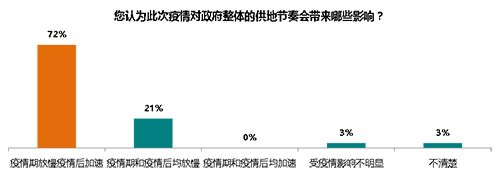 從全年政府供地節(jié)奏來看,有72%的專家認為此次疫情將明顯改變政府整體的供地節(jié)奏,疫情期間放慢供地,疫情控制后加速供地。從以往的推地節(jié)奏來看,上半年政府供地往往未達供地計劃的一半,而下半年集中推地,全年的供地節(jié)奏具有明顯的季節(jié)性特征。此次疫情的出現(xiàn),政府上半年的供地計劃將大受影響,加上疫情期的減稅、公共財政支出大幅增長等情況,疫情期過后確實存在加速供地的可能。而從企業(yè)的情況來看,受此次疫情的影響,有些企業(yè)投資信心是不足的,目前營銷放緩,很多快周轉(zhuǎn)企業(yè)可用于拿地的資金就會比較緊張,因此不得不對投資的規(guī)模和節(jié)奏進行更加審慎的管控。那么,這就給一部分現(xiàn)金流充沛的企業(yè)或融資優(yōu)勢明顯的企業(yè)提供了增加土地儲備的絕佳機會。