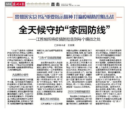 蘇州日報關(guān)于江蘇旭輝的報道
