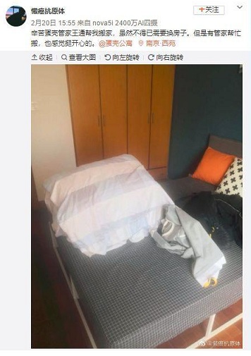 3.受疫情期間不少小區(qū)嚴(yán)格管控的影響,無(wú)法出入小區(qū)的租客,蛋殼公寓均就近給予安置。老冀在微博上就看到名為“懶癌抗原體”的用戶在20日下午3點(diǎn)55分的發(fā)言:“辛苦蛋殼管家王通幫我搬家,雖然不得已需要換房子。但是有管家?guī)兔Π幔哺杏X(jué)挺開(kāi)心的!