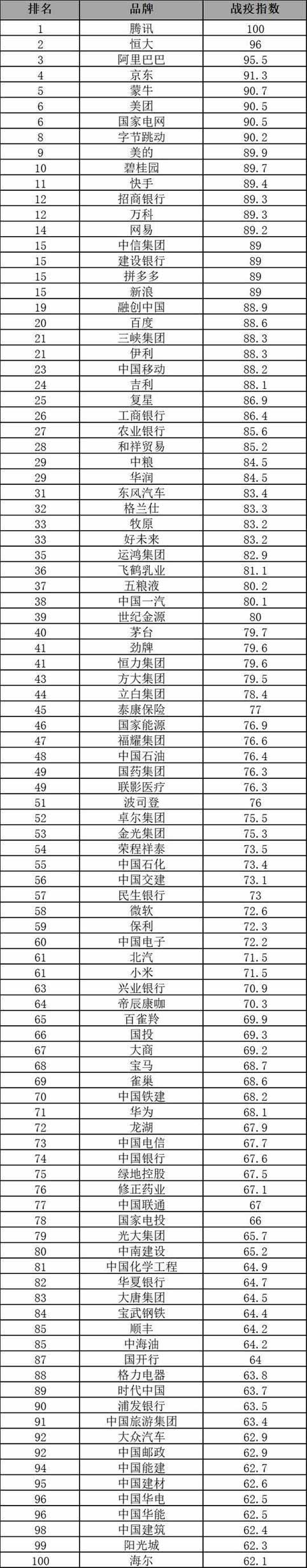 騰訊、恒大、阿里巴巴等名列“3·15”品牌戰(zhàn)疫指數(shù)TOP10