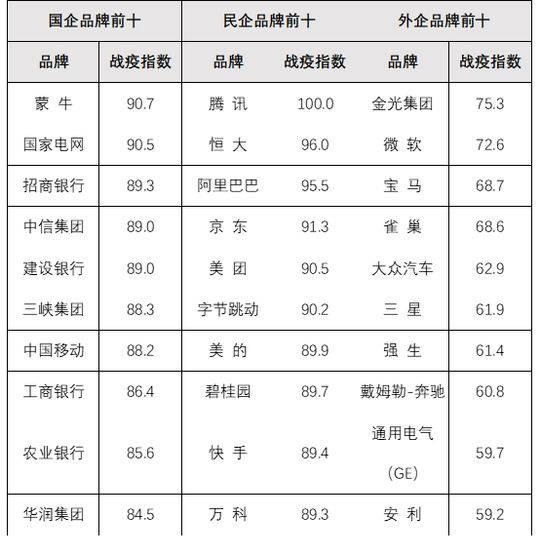 蒙牛、騰訊、金光集團戰(zhàn)疫指數(shù)分列國企、民企、外企第一