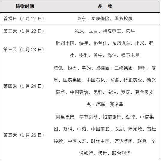 品牌捐贈時間(1月21日-25日)制表:鐘宏武(中國社科院)、汪杰等(責(zé)任云研究院)
