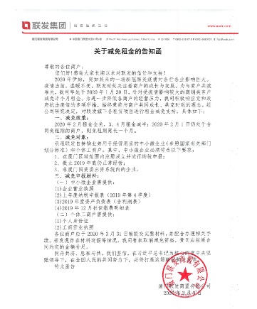 受此次疫情影響,各行各業(yè)都遭受到不小的沖擊,特別是中小微企業(yè)、個(gè)體經(jīng)營(yíng)者、商鋪門店,更面臨著營(yíng)收下滑、租金費(fèi)用等經(jīng)營(yíng)壓力。日前,廈門品牌國(guó)企廈門聯(lián)發(fā)商置有限公司積極履行社會(huì)責(zé)任,發(fā)布了一則減免租金的公告,為園區(qū)商企客戶減免3個(gè)月的租金,助力中小微企業(yè)渡過難關(guān)。