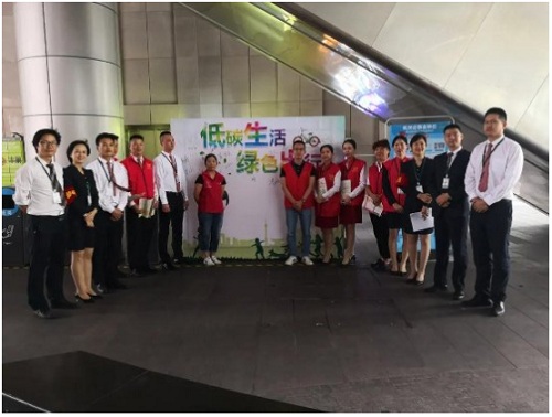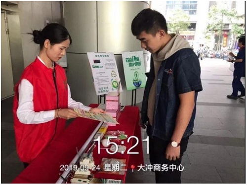 (大沖商務(wù)中心工作人員宣傳綠色理念)