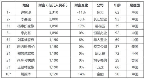 3月20日,胡潤研究院今日發(fā)布《2020胡潤全球房地產(chǎn)富豪榜》(Hurun Global Real Estate Rich List 2020)。上榜企業(yè)家主要財(cái)富來源于房地產(chǎn)領(lǐng)域,上榜門檻為十億美金,財(cái)富計(jì)算截止日期為2020年1月31日。