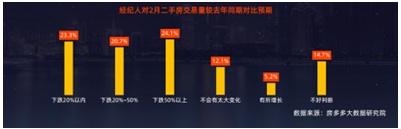 報(bào)告顯示,超六成經(jīng)紀(jì)人認(rèn)為疫情將在5月之前結(jié)束,經(jīng)紀(jì)人普遍對2月業(yè)績預(yù)期悲觀,,其中24.1% 的經(jīng)紀(jì)人預(yù)計(jì)今年2月所在區(qū)域的二手房交易量同比下跌將超過50%。46.6%的管理者有信心將損失控制在30%以內(nèi)。
