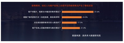 與此同時(shí),37.6%的經(jīng)紀(jì)人感受到疫情期間客戶對圖片、視頻與VR在線看房的需求明顯增加。23.5%的經(jīng)紀(jì)人在疫情期間開始嘗試通過短視頻與微信賣房,17.5%的經(jīng)紀(jì)人明顯感覺與客戶在朋友圈中的互動(dòng)增多,私域流量對獲客的幫助有所提升。