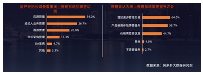 另一方面,多數(shù)企業(yè)在當(dāng)前環(huán)境被倒逼轉(zhuǎn)型、升級,近七成管理者已使用線上管理系統(tǒng)。調(diào)查數(shù)據(jù)顯示,34.0%的管理者對房源管理功能最為看重,其次是經(jīng)紀(jì)人業(yè)務(wù)管理。64.0%的管理者認(rèn)為線上管理系統(tǒng)需要增加更多管理功能。
