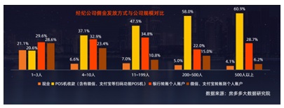 過去一年規(guī)模越大的經(jīng)紀(jì)公司以及2019年業(yè)務(wù)發(fā)生調(diào)整的經(jīng)紀(jì)公司,多采用POS機(jī)和銀行轉(zhuǎn)賬的方式收傭、收款。未來,資金管理將越來越規(guī)范化,面向多門店、多類型、多渠道、多業(yè)務(wù),通過房產(chǎn)SaaS系統(tǒng)達(dá)到資金管理的線上收款、賬單歸集、賬務(wù)管理。