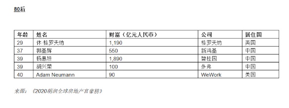 80后房地產(chǎn)富豪圖片來源:胡潤(rùn)研究院
