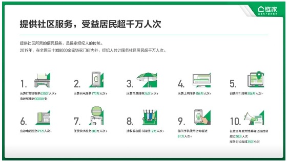 此外,在創(chuàng)新社區(qū)服務(wù)方面,鏈家于2018年在北京、上海和青島打造了“一站三隊(duì)”(“一站”為城市補(bǔ)給站,“三隊(duì)”分別為便民服務(wù)隊(duì)、社區(qū)共建隊(duì)、愛(ài)心公益隊(duì))的新型社區(qū)服務(wù)體系。鏈家經(jīng)紀(jì)人積極參與其中,深度參與社區(qū)的共建。