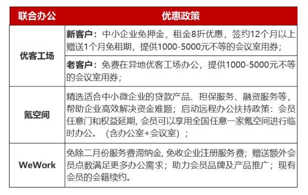 疫情期間聯(lián)合辦公品牌優(yōu)惠政策