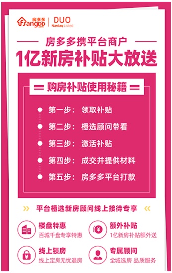 活動(dòng)期間房多多平臺的精選樓盤項(xiàng)目都已上線一定金額的購房補(bǔ)貼,價(jià)值從3000元至10000元不等,消費(fèi)者瀏覽樓盤詳情頁后即可領(lǐng)取無門檻購房補(bǔ)貼,享受平臺指定橙選新房顧問提供的一對一選房、看房、訂房服務(wù)。當(dāng)消費(fèi)者最終認(rèn)購房屋后,上傳購房合同即可快速、便捷領(lǐng)取該項(xiàng)補(bǔ)貼。據(jù)房多多市場負(fù)責(zé)人介紹,該營銷玩法的設(shè)計(jì)思路來源于電商領(lǐng)域大家熟知的“返利”。